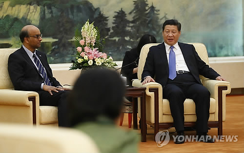 | △ 지난해 10월 중국 AIIB 설립 양해각서 체결식에 참석한 시진핑 중국 국가주석(오른쪽) (EPA=연합뉴스 자료사진) |