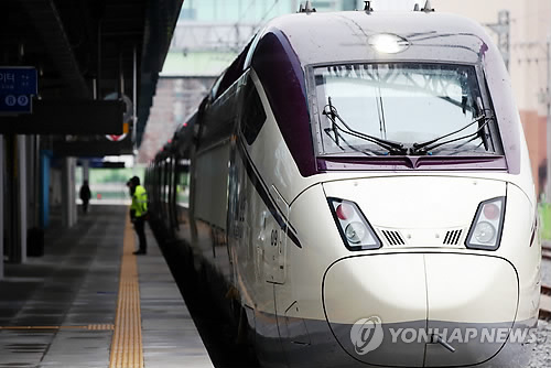 | △ 개통 기다리는 신형 KTX (광주=연합뉴스) 박철홍 기자 = 호남고속철도 개통식이 열린 1일 오후 광주송정역 플랫폼에 보라색 외관이 특징인 신형 KTX가 개통 시승행사를 앞두고 대기하고 있다. |