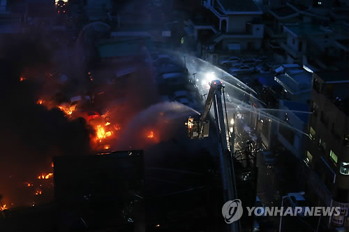 소방당국은 소방차 100여 대, 소방관 360 명을 동원, 불을 끄고 있지만 화재 규모가 워낙 커 진화작업에 어려움을 겪고 있다.