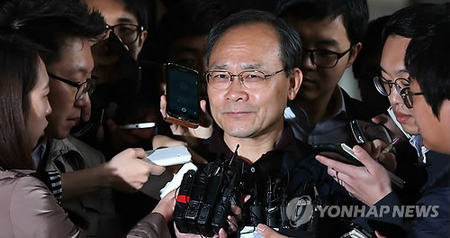 | △ 질문받는 성완종 경남기업 회장 (서울=연합뉴스) 이지은 기자 = 성완종 경남기업 회장이 융자금 유용·횡령·분식회계 혐의 관련 조사를 받으려고 3일 오전 서울 서초구 서초동 중앙지검에 출석, 취재진의 질문을 받고 있다. |