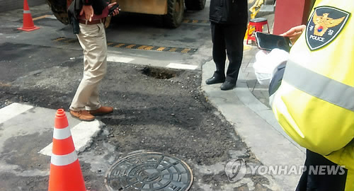 하지만 이후 차량이 잇달아 해당 구간을 오가면서 임시 조치해놓은 구간이 약해져 구멍이 난 것으로 보인다고 구청 측은 전했다.