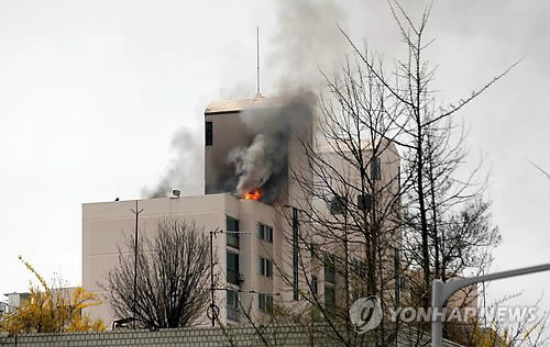 | △ (서울=연합뉴스) 신준희 기자 = 4일 오후 서울 강남구 삼성동의 한 아파트에서 화재가 발생, 불꽃이 피어오르고 있다. |