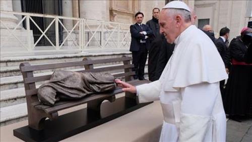 캐나다 출신 조각가 티머시 슈멀츠가 제작한 이 조각상은 2013년 가을 바티칸의 성 베드로 광장에서 가난한 자의 친구로 평생을 살아온 프란치스코 교황의 축성을 받아 더욱 널리 알려졌다.