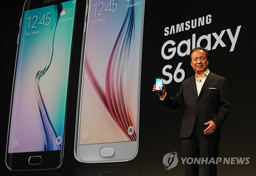 | △ 지난달 1일(현지시간) 스페인 바르셀로나 컨벤션센터(CCIB)에서 열린 '삼성 갤럭시 언팩 2015'에서 신종균 삼성전자 IM부문 대표가 '갤럭시S6'와 '갤럭시 S6 엣지'를 공개하고 있다. |