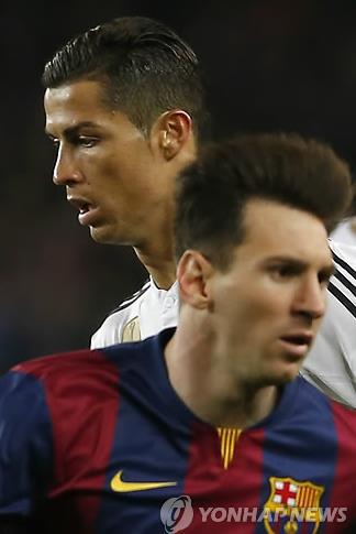 | △ 크리스티아누 호날두(레알 마드리드)와 리오넬 메시(바르셀로나).(AP=연합뉴스DB) |