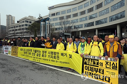 (서울=연합뉴스) 권영전 김은경 기자 = 세월호 유가족과 시민단체들이 세월호특별법 시행령안 입법예고 마지막 날인 6일 해양수산부에 반대 의견서를 잇달아 제출해 시행령안 철회를 촉구했다.
