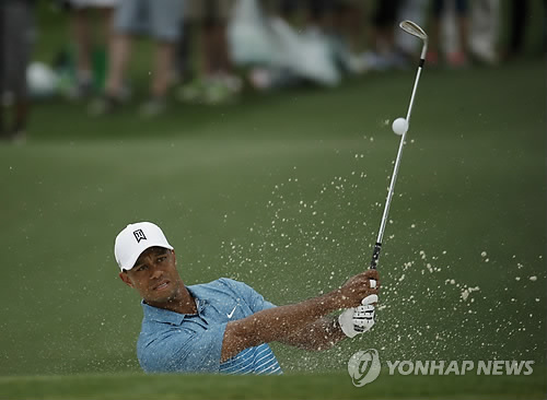 | △ 재기에 꼭 성공해야 하는데… (AP=연합뉴스) 2개월 만에 복귀한 골프황제 타이거 우즈(미국)가 6일(이하 현지시간) 마스터스 골프대회가 열리는 미국 조지아주 오거스타 내셔널 골프장에서 공식 연습 라운드를 가졌다. 사진은 우즈가 2번홀에서 칩샷을 하고 있는 모습. |