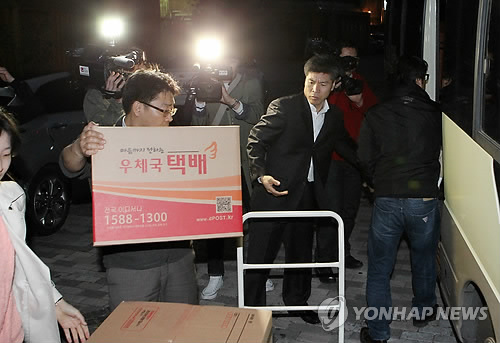 | △ 포스코 거래사 코스틸 압수수색 (서울=연합뉴스) 이승민 기자 = 포스코건설 비자금 의혹을 수사 중인 서울중앙지검 수사관들과 관계자들이 7일 오후 서울 동대문구 전농동에 위치한 코스틸 압수수색을 마친 뒤 압수물품을 차량에 싣고 있다. logos@yna.co.kr |