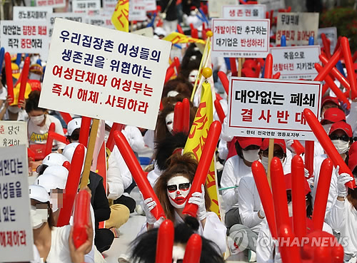 | △ 지난 2011년 5월 17일 오후 서울 영등포구 영등포동 타임스퀘어 앞에서 집창촌 업주와 종사자들이 집회를 갖고 집창촌 폐쇄에 반대하며 생존권 보장을 요구하는 구호를 외치고 있다. |