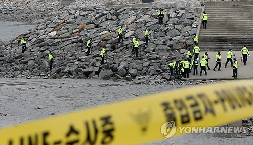 | △ 계속되는 시화방조제 수색작업 (시흥=연합뉴스) 신영근 기자 = 지난 5일에 이어 7일 오전에도 토막 시신이 발견된 경기도 시흥 시화방조제에서 경찰 병력이 수색작업을 벌이고 있다. 2015.4.7 drops@yna.co.kr |