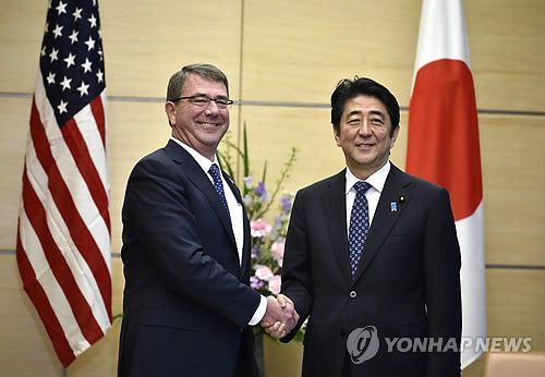 | △ 아베 총리와 카터 장관(AP.연합뉴스) |