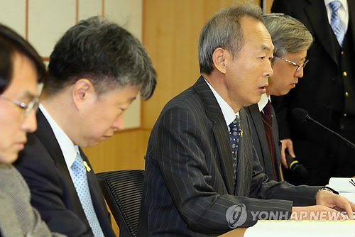 | △ 세월호 특조위 "특별법 시행령안은 조사 무력화 시도" (서울=연합뉴스) 진성철 기자 = 4·16 세월호 참사 특별조사위원회의 이석태 위원장(오른쪽 두 번째)이 지난달 29일 국회 의원회관에서 열린 긴급기자회견에서 모두발언하고 있다. 세월호 특조위는 이날 해양수산부가 입법예고한 세월호 특별법 시행령안에 대해 "세월호 특별조사위의 기능과 권한에 대한 무력화 시도"라고 강하게 비판했다. 2015.3.29 zjin@yna.co.kr |