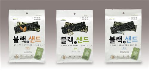 블랙김샌드는 식이섬유가 풍부한 김과 김 사이에 현미, 아몬드, 멸치를 넣고 바삭하게 구운 제품으로 '블랙김샌드 현미'(20g/1천950원), '블랙김샌드 아몬드'(20g/1천950원), '블랙김샌드 멸치'(20g/1천950원) 등 3가지 종류다.