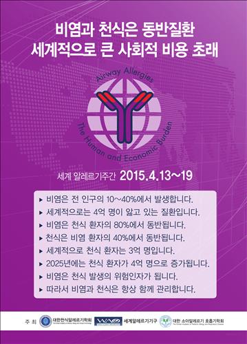 세계알레르기기구(WAO;World Allergy Organization)는 이런 알레르기질환의 중요성을 알리기 위해 4월 13~19일을 '알레르기주간'으로 정했다. 국내에서도 천식알레르기학회 주관으로 알레르기질환 예방캠페인이 진행된다.