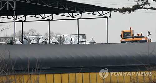 | △ '축산도시' 안성 "소·돼지 구제역에 AI까지" (안성=연합뉴스) 신영근 기자 = 14일 오후 소와 돼지 구제역에 이어 조류인플루엔자(AI) 의심 신고까지 접수된 경기도 안성시의 한 오리농장에서 방역 관계자들이 예방적 차원에서 오리 7천여 마리와 오리알을 매몰 처리하고 있다. 2015.1.14 drops@yna.co.kr http://blog.yonhapnews.co.kr/geenang |