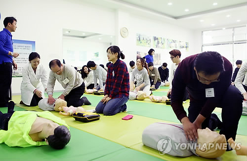 (부산=연합뉴스) 민영규 기자 = 지난해 4월 발생한 세월호 참사 이후 위기상황에 대처하는 능력을 갖추려는 분위기가 확산하면서 각급 기관에서 시행하는 응급처치 교육에 참여 열기가 뜨겁다.