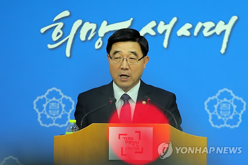 | △ 고용장관 "입법 등으로 노동시장 구조개선 계속 추진" (서울=연합뉴스) 이정훈 기자 = 이기권 고용노동부 장관이 9일 오후 정부서울청사에서 열린 노사정 대타협 결렬 관련 기자간담회에서 정부 입장을 발표하고 있다. 2015.4.9 uwg806@yna.co.kr |