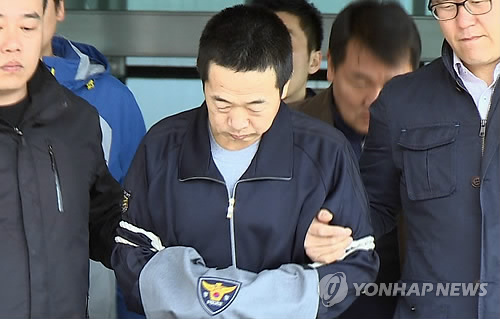 | △ 영장실질 위해 경찰서 나서는 시흥 토막살인범 김하일 (시흥=연합뉴스) 아내를 살해한 후 시신을 훼손, 경기 시흥 시화방조제에 유기한 김하일(47·중국 국적)씨가 영장실질 심사를 받기 위해 10일 오전 시흥경찰서를 나서고 있다. 2015.4.10 <<연합뉴스 TV>> you@yna.co.kr |
