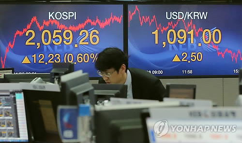 코스피는 지난 8일 심리적 저항선으로 여겨지던 2,050선을 넘어선 데 이어 10일 에는 장중 2,080선 위로 올라섰다.