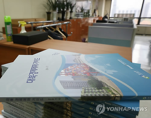| △ 개성공단 북한 근로자에 대한 3월분 임금 지급이 10일부터 시작되는 가운데 최저임금 인상여부를 놓고 갈등을 빚어온 남북이 절충점을 찾을 수 있을지 주목된다. 북한은 최저임금을 70.35달러에서 74달러로 인상한다고 일방 통보하고 3월 임금부터 이 기준에 맞춰 지급해야 한다고 주장하는 반면, 남측은 일방적인 최저임금 인상은 수용할 수 없다며 기업들에 종전 기준대로 임금을 지급하라고 당부한 상태다. 사진은 9일 오후 서울 영등포구 개성공단기업협회 사무실에 놓여진 대북경제제재 가이드 책자.(연합뉴스 자료사진) |