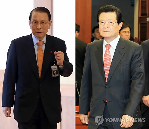 | △ 검찰 "성완종 금품메모 발견…김기춘·허태열 포함" (서울=연합뉴스) 자원외교 비리 의혹으로 검찰 수사를 받다가 숨진 채 발견된 성완종 전 경남기업 회장이 정치권에 금품을 뿌린 정황을 적은 메모를 검찰이 확보했다. 10일 서울중앙지검 특수1부에 따르면 전날 성 전 회장의 시신을 검시하는 과정에서 김기춘·허태열 전 청와대 비서실장 등의 이름과 특정 액수가 적힌 쪽지가 발견됐다. 사진은 청와대 비서실장 재임시절의 김기춘(좌), 허태열 비서실장. (연합뉴스DB) photo@yna.co.kr |