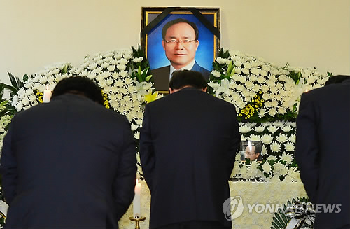 | △ 성완종 전 회장 빈소 찾은 조문객 (서산=연합뉴스) 이재림 기자 = 10일 오후 충남 서산시 서산의료원에 마련된 성완종 전 경남기업 회장 빈소에서 조문객이 묵념하고 있다. |