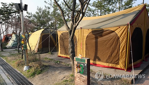 (청주=연합뉴스) 김형우 기자 = 청주 시민의 쉼터인 청주 문암생태공원 야영장이 '유령텐트'로 몸살을 앓고 있다.