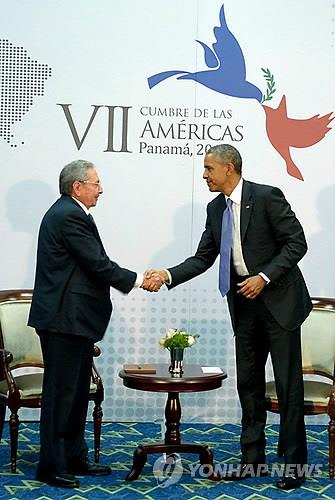 (파나마시티<파나마> AFP=연합뉴스) '악수, 미소, 한 시간이 넘는 솔직한 대화'
