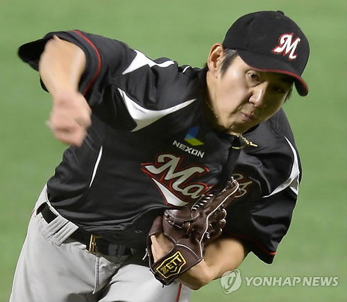 | △ 사진은 지난달 29일 일본 후쿠오카 야후오크돔에서 열린 소프트뱅크 호크스와의 경기에서 역투하는 모습. photo@yna.co.kr |