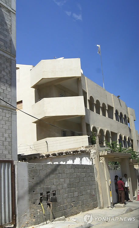 | △ 트리폴리 韓대사관에 IS 공격…경비원 2명 사망 (서울=연합뉴스) 리비아 수도 트리폴리에 있는 한국 대사관이 12일(현지시간) 무장괴한의 공격을 받아 경비원 2명이 숨지고 1명이 부상했다고 신화통신이 보도했다. 통신은 보안 당국 관계자를 인용해 차를 타고 지나가던 무장 단체가 대사관 앞에서 다수의 총알을 발사했다고 전했다. 이 관계자는 "이번 사건은 이슬람 국가(IS)에 의해 자행된 것"이라고 전했다. 사진은 2011년 8월 28일 소총 무장 괴한 10여 명 난입 사건 당시의 리비아 주재 한국 대사관 모습. (연합뉴스 DB) |