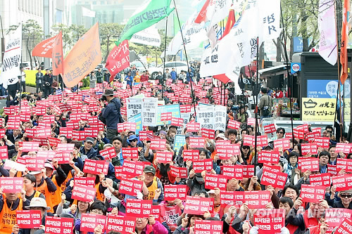 한상균 민노총 위원장은 "정부가 노사정위원회를 들러리로 내세워 쉬운 해고와 임금 삭감, 더 많은 비정규직 양산을 시도했지만 결국 실패로 끝나고 말았다"며 "정부 주도의 노동시장 구조개악을 중단하라"고 촉구했다.