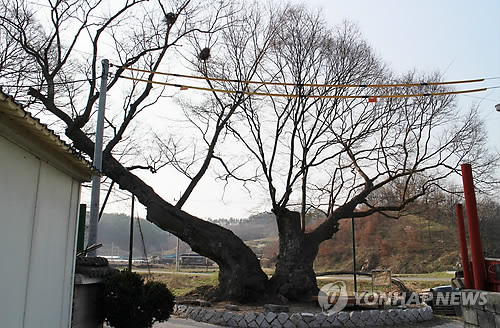 | △ '독립군 나무'로 불리는 영동의 느티나무 (영동=연합뉴스) 박병기 기자 = '독립군 나무'로 불리는 충북 영동군 학산면 박계리에 있는 느티나무. 영동군은 3·1 만세운동에 참가한 시민과 독립군들이 이 나무에 헝겊 표식을 매달아 서로 정보를 주고받았다고 13일 밝혔다. 2015.4.13 <<영동군 제공>> bgipark@yna.co.kr |