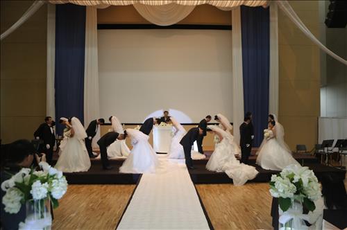 (서울=연합뉴스) 박대한 기자 = 삼성전자[005930]는 지난 12일 결혼식을 올리지 못한 수원 지역 부부 9쌍을 위해 수원사업장에서 '사랑의 합동결혼식'을 열었다고 13일 밝혔다.
