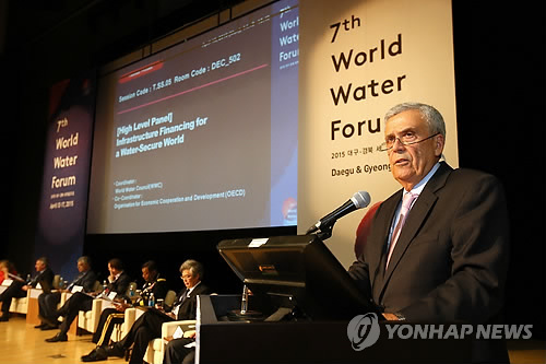 (대구=연합뉴스) 김선형 기자 = 앙헬 구리아 OECD 사무총장은 13일 "물을 아끼는 사람은 비용을 적게 지불하고, 평균 이상으로 사용하는 사람은 돈을 더 내게 한다"며 "이런 경제적인 기술로 물 사용·재원확보에 효율성을 꾀할 수 있다"고 밝혔다.