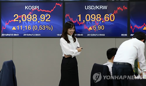 코스피지수는 13일 외국인과 개인 매수세에 힘입어 전날보다 11.16포인트(0.53%) 오른 2,098.92로 마감했다.