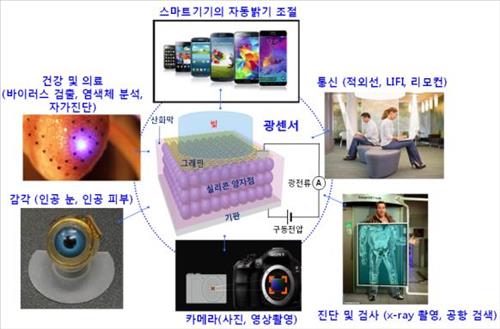 또 이 광센서는 구동전압을 기존 소자 대비 50% 이하로 낮춰 착용형(웨어러블) 기기와 사물인터넷(IoT) 제품 등은 물론 가시광선 이미징 기술, 의료 진단·검사, 빛을 이용한 무선통신(Li-fi) 등에도 활용할 수 있다고 연구진은 밝혔다.