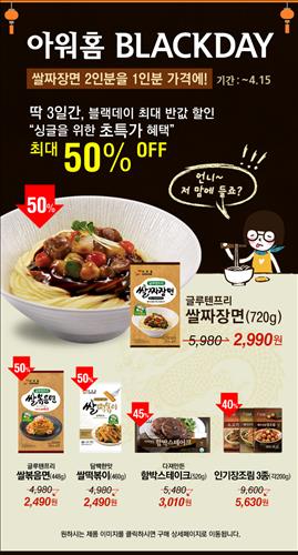 행사 기간 온라인 쇼핑몰 아워홈몰(http://www.ourhomemall.co.kr)에서는 '글루텐프리 쌀짜장면'을 50% 할인된 2천990원에 판매한다.