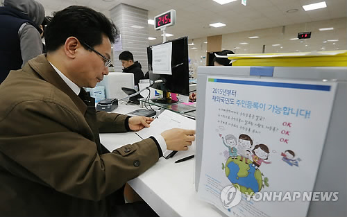 | △ (파주=연합뉴스) 임병식 기자 = 행정자치부는 14일 정부서울청사에서 '책임읍면동제' 시행계획을 발표했다. 책임읍면동이란 2개 이상의 읍·면·동을 묶고 그 중 대표 읍·면·동에 더 큰 권한과 책임을 부여, 본래 기능에 더해 기초자치단체(시군구청)의 주민편의 기능까지 함께 제공하도록 한 곳을 말한다. 올해 1월 책임읍면동제 시행을 앞두고 주민센터 현장 방문에 나선 고규창 행자부 자치제도정책관이 경기도 파주시 운정행복센터(주민센터)에서 인감증명을 대신하는 '본인서명확인'을 등록하고 있다. 2015.1.26 andphotodo@yna.co.kr |
