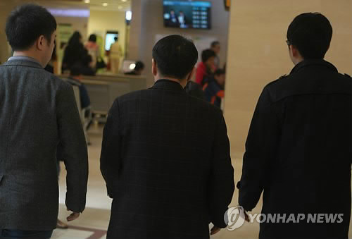 | △ 홍준표 1억 전달자 윤씨 (서울=연합뉴스) 임채두 기자 = 성완종 전 경남기업 회장이 홍준표 경남지사에게 1억원을 줬다는 의혹과 관련해 두 사람 사이의 '전달자' 역할을 한 것으로 알려진 윤모씨(가운데)가 14일 오전 서울 한 병원에서 기자들의 질문을 받으며 진료실로 향하고 있다. 윤씨는 '홍 지사에게 직접 돈을 전달했느냐'는 등 여러가지 질문에 아무런 답을 하지 않았다. |