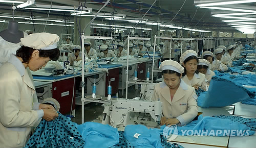 | △ 북한이 개성공단 근로자에 대한 임금이 연체될 경우 일방적으로 하루 0.5%의 연체료를 부과하고 있는 것으로 전해졌다. 사진은 개성공단 (주)신원 공장에서 북한 근로자들이 제품을 만들고 있다. |