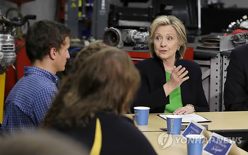 15일(현지시간) 현지 언론에 따르면 클린턴 전 장관은 전날 아이오와 주 동쪽의 작은 마을인 몬티첼로의 커크우드커뮤니티칼리지에서 한 원탁회의에서 "우리는 고장 난 정치시스템을 고칠 필요가 있다"며 "헌법을 고쳐서라도 정체 모를 자금을 영원히 추방해야 한다"고 말했다.