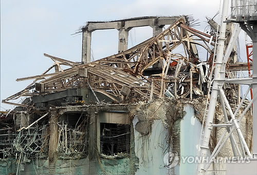 | △ epa03113849 Destroyed atop of No.3 reactor building of Tokyo Electric Power Co. (TEPCO)'s tsunami-crippled Fukushima Daiichi nuclear power plant is seen in Fukushima prefecture, February 20, 2012. Members of the media were allowed into the plant on Monday ahead of the 1-year anniversary of the March 11, 2011 tsunami and earthquake for the second time since the disaster, which triggered the world's worst nuclear crisis since Chernobyl. EPA/ISSEI KATO |