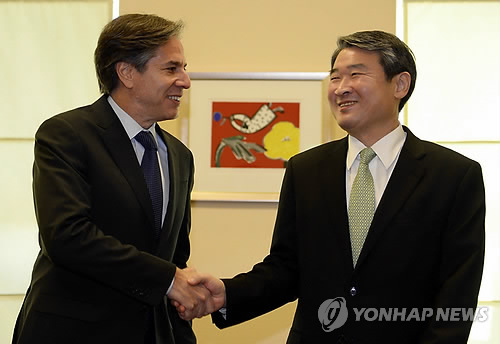 블링큰 부장관은 그러나 "미국은 한·일 양국 사이를 중재하는 것이 아니라 (관계 개선을) 독려하는 것"이라며 미국이 적극적 중재에 나섰다는 외교가의 관측을 부인했다.