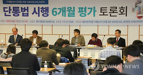 (서울=연합뉴스) 양정우 윤보람 기자 = '단말기유통구조개선법(단통법)' 시행 6개월을 맞아 17일 국회 의원회관에서 열린 토론회에서는 단통법 효과를 놓고 찬반 의견이 팽팽히 맞섰다.