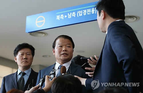 | △ 답변하는 신한용 개성공단 기협 부회장 (파주=연합뉴스) 임병식 기자 = 개성공단 최저임금 인상을 놓고 남북이 갈등하는 가운데 신한용 개성공단 기업협회 부회장이 20일 오후 경기도 파주시 경의선 남북출입사무소에서 입경 후 취재진의 질문에 답하고 있다. 신 부회장 등 입주기업 대표들은 이날 개성공단을 방문해 북한 근로자 임금 지급 현황을 점검하고 돌아왔다. |
