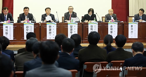 | △ "경기도 버스 요금 오르나?" (수원=연합뉴스) 신영근 기자 = 21일 오후 경기도 수원 경기도의회에서 '2015 시내버스 요금조정' 도민 의견수렴을 위한 공청회가 열려 패널토의가 이뤄지고 있다. 2015.4.21 drops@yna.co.kr |