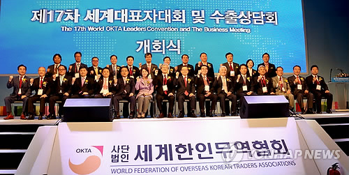 | △ 한인 경제인 모여 구미 중소기업과 동반 성장 모색 (구미=연합뉴스) 강성철 기자 = 전 세계 68개국 135개 도시에 지회를 둔 최대 규모의 재외동포 경제단체 세계한인무역협회(월드옥타)는 경북 구미시의 구미코(구미컨벤션센터)에서 '세계대표자대회 및 수출상담회' 개막식을 개최하고있다. wakaru@yna.co.kr |