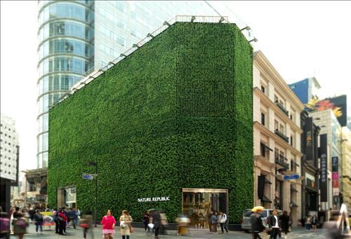 (서울=연합뉴스) 이유미 기자 = 전국에서 가장 비싼 땅에 자리 잡은 서울 명동의 네이처리퍼블릭 매장이 초록빛 생화에 둘러싸인 외관으로 재탄생했다.