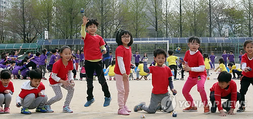| △ 즐거운 봄 운동회 (수원=연합뉴스) 신영근 기자 = 22일 오전 경기도 수원시 장안구 화서동 율현초등학교에서 운동회를 겸한 체육대회가 열려 유치원과 1학년 학생들이 공주머니 바구니 넣기를 하며 즐거운 한 때를 보내고 있다. 율현초등학교는 안전을 고려해 1천명에 달하는 전교생이 한꺼번에 운동회에 참가하는 것이 아닌 학년별로 체육대회를 개최하고 있다고 밝혔다. 2015.4.22 drops@yna.co.kr |