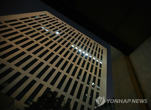| △ 불 밝힌 검찰 (서울=연합뉴스) 김도훈 기자 = 22일 '성완종 리스트'를 수사하는 특별수사팀이 있는 서울 서초구 고등검찰청에 불이 켜져 있다. 검찰은 전날 참고인 신분으로 조사를 했던 성완종 전 경남기업 회장의 측근인 박준호 전 상무를 증거인멸 혐의로 22일 새벽 긴급체포했다. superdoo82@yna.co.kr |